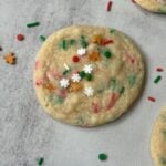 Add extra sprinkles and white chocolate chips on top of the cookies fresh out of the oven. Then, let cool on the baking sheet for 5 minutes before transferring to a wire rack.